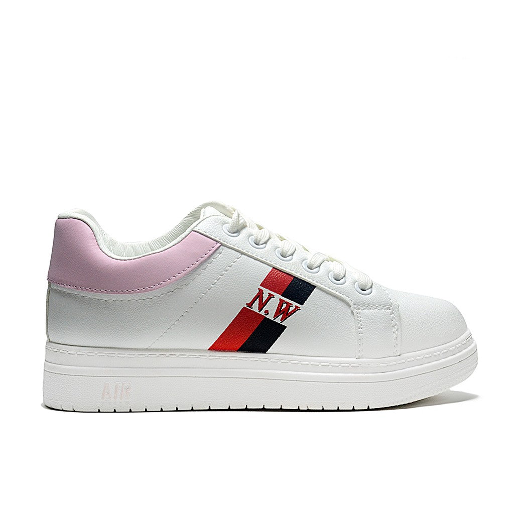 WHITE&PINK Mesh-Textile Side-Logo Lace-up Running Athletic Shoes for Women ,Model CCB02